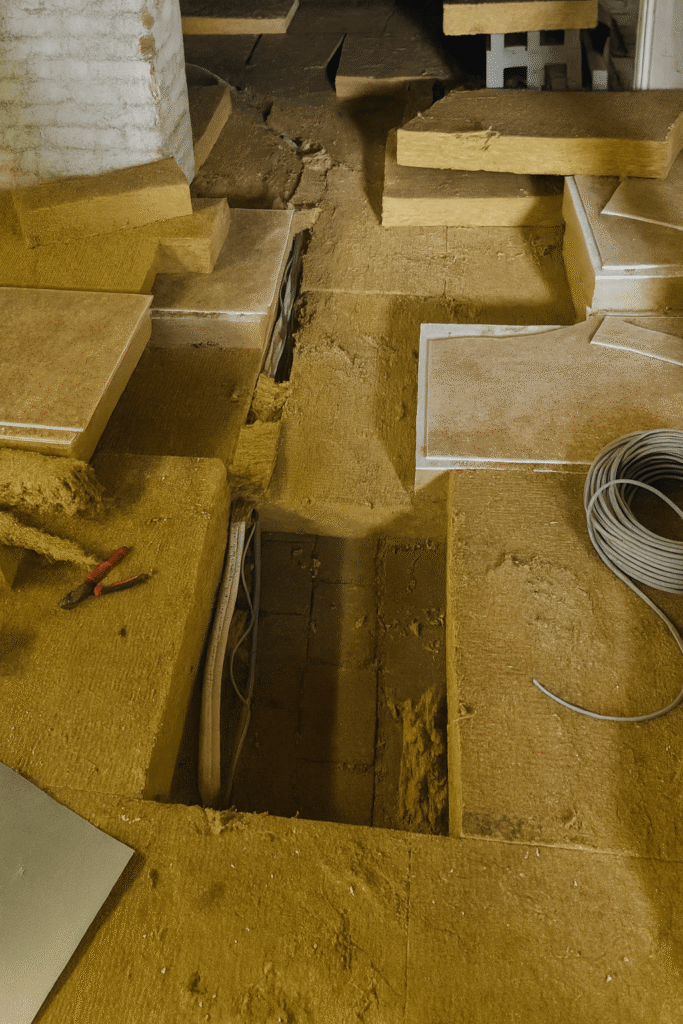 geführt über den Dachboden, Zwischendecken sowie einen unbenutzten Rauchfang bis zum Gebäudedach.