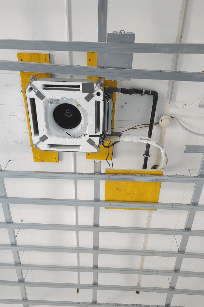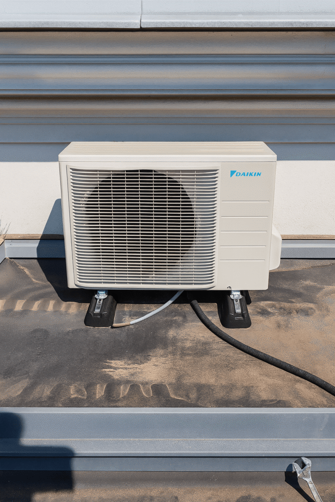 Die Installation der Außengeräte erfolgte im Innenbereich, während alle Leitungen elegant verdeckt durch bestehende Gebäudestrukturen geführt wurden.